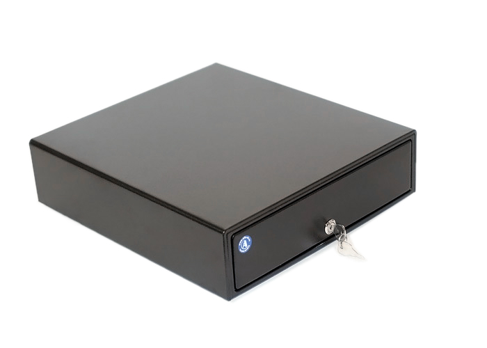 Автоматический денежный ящик Цвет: бежевый/чёрный. 3-х позиционный замок. Количество отсеков под купюры/монеты - 4/5.