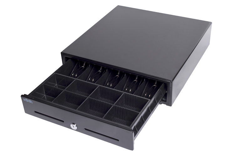 Электромеханический денежный ящик VIOTEH HVC-15 предназначен для хранения денежной массы кассира при расчетах с покупателями на ККМ. Уменьшенные габариты и вес изделия, съёмный отсек для монет, 5 отделений для банкнот, 8 для монет. Ящик оснащён 3-х позиционным замком и металлическими прижимами для купюр. Напряжение на катушке – 24V, тип разъёма – RJ12. В ящике предусмотрен специальный слот для хранения документов на передней панели. Рабочий ресурс – 1 млн. циклов открытия ящика.