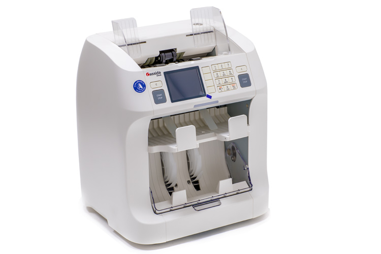 Двухкарманный сортировщик банкнот с цветным CIS сканером, функцией сверки серийных номеров на высокой скорости и функцией мультивалютного пересчета.