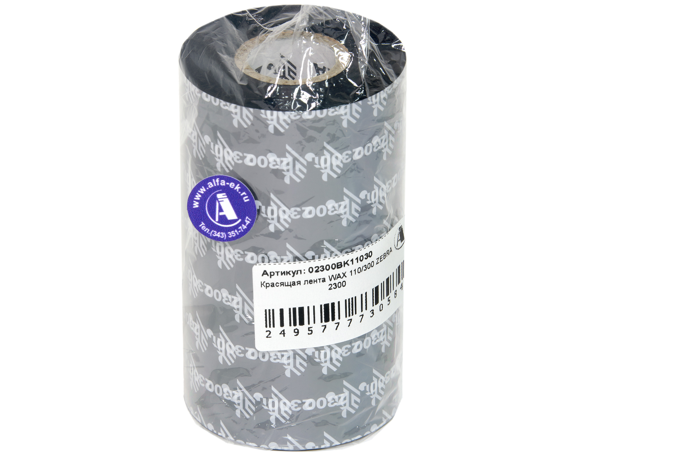 Красящая лента WAX Zebra 2300 110/300, длина риббона 300 метров, ширина риббона 110 миллиметров, ширина втулки 110 миллиметров, материал WAX, втулка диаметром 1 дюйм
