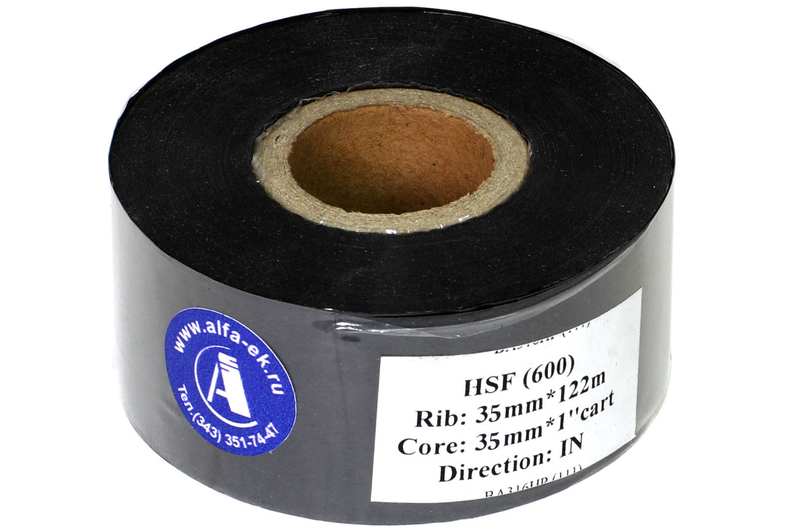 Маркировочная фольга горячего тиснения HSF 600 (Hot Stamping Foil) для печати на полипропилене, полиэстере, ПВХ, синт.упаковке и бумаге. Цвет - черный, ширина 35мм, длина 122 метра, намотка - IN. Материал - воск с добавлением синтетических смол.